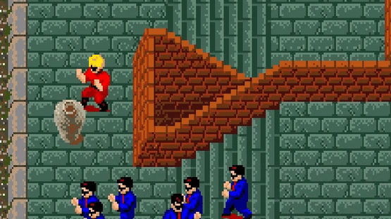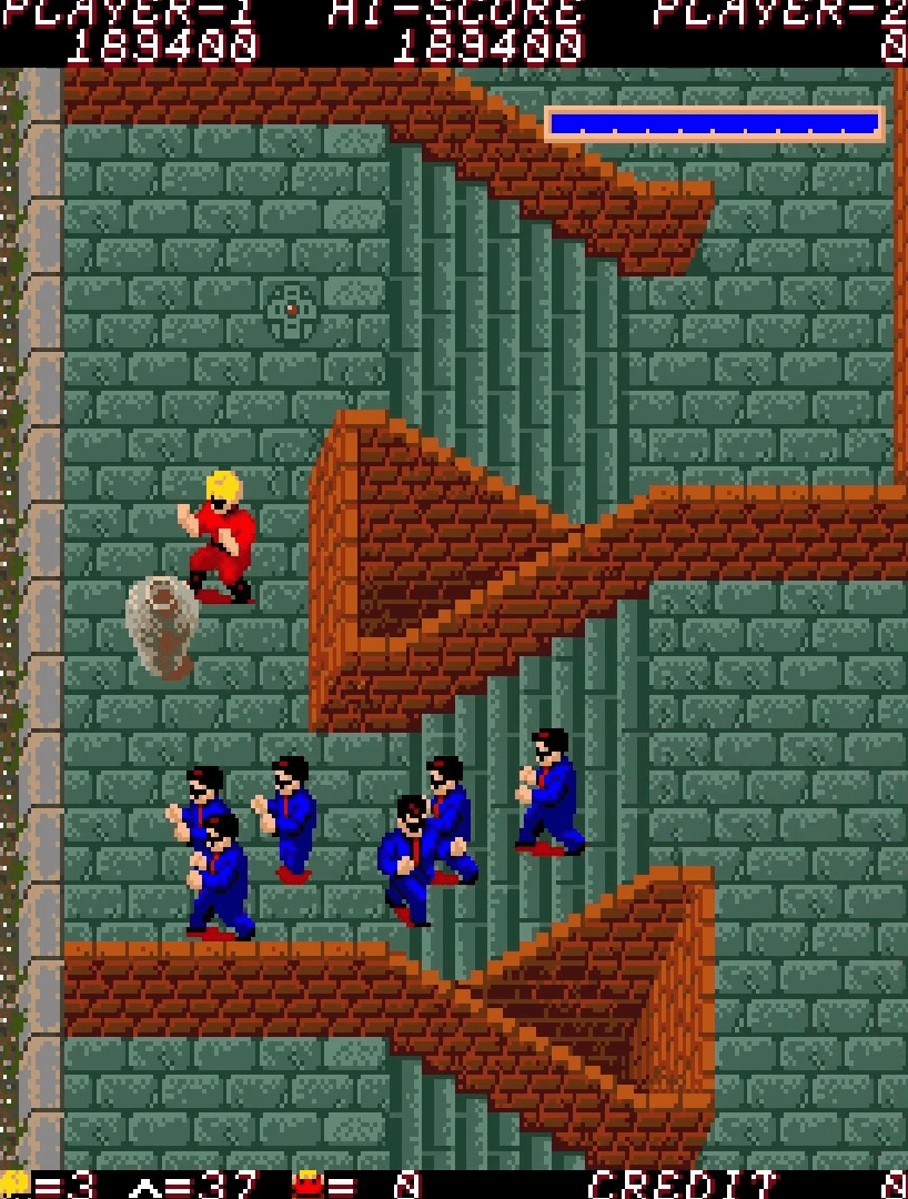 A top-down beat 'em up from Alpha Denshi, licensed by World Games, Inc.