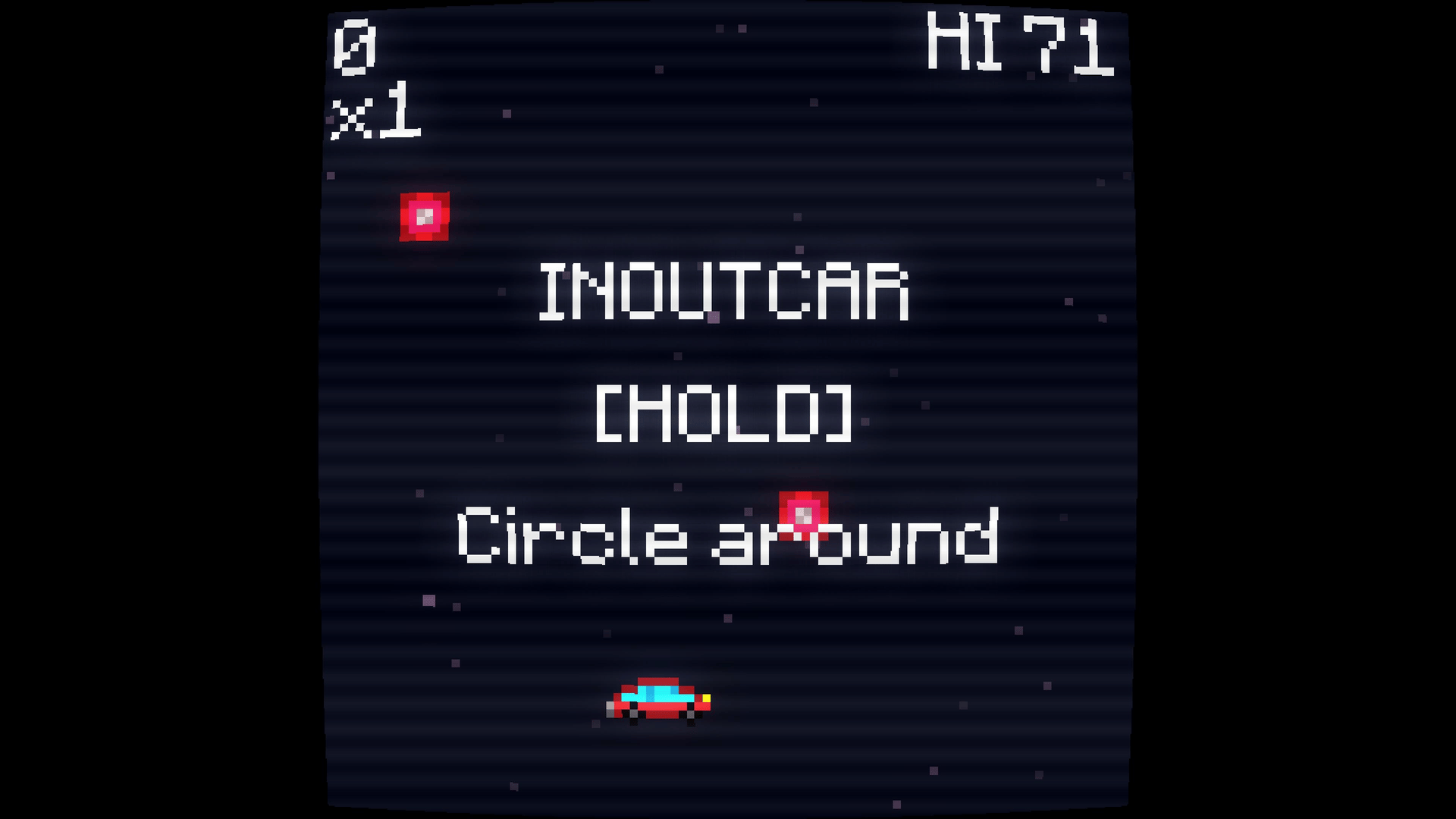 I don't think a car should behave like this, but alas, it is happening! INOUTCAR is a fast paced one-button arcade game where your car somehow got stranded in space and it's spinning in circles.