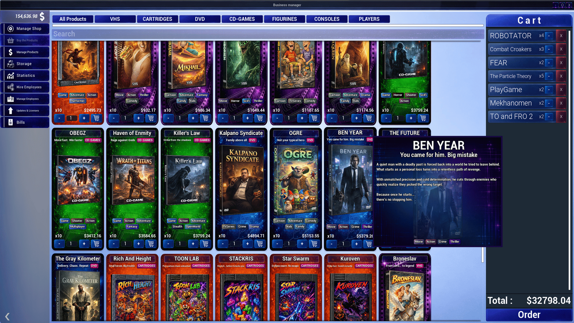 Open For Business is a shop management simulator, but not a typical one. This isn’t about selling water, food, or random everyday items. It’s about nostalgia — that feeling you get when you pick up a game, a movie, a cartridge, or a VHS, and it actually means something. In this game, you build your own store and sell games, movies and animated films, consoles, collectible figures, and more — from retro VHS tapes and cartridges to modern entertainment.