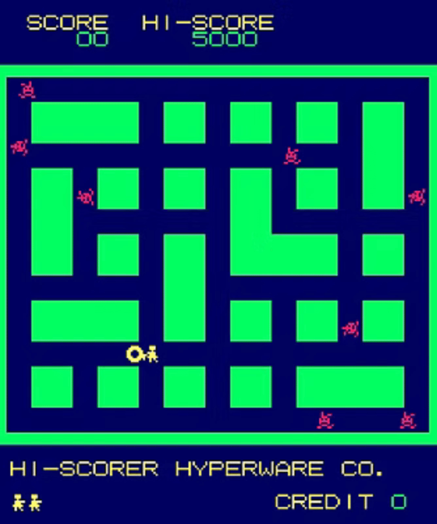 The player controls a Heian period police officer who must defend the capital city from an alien invasion by digging holes in the ground and filling them back up after an alien falls inside. The player scores points for every alien trapped, and the quicker the hole is filled up after the alien falls in, the higher the number of points are scored. The aliens increase in number as the levels progress, and they can escape from holes after a certain period of time elapses or if another alien passes above their hole. The player loses if he comes in contact with an alien. There is a time limit for each level, and the number of aliens increases drastically when this limit is reached, essentially preventing the player from completing the level.
