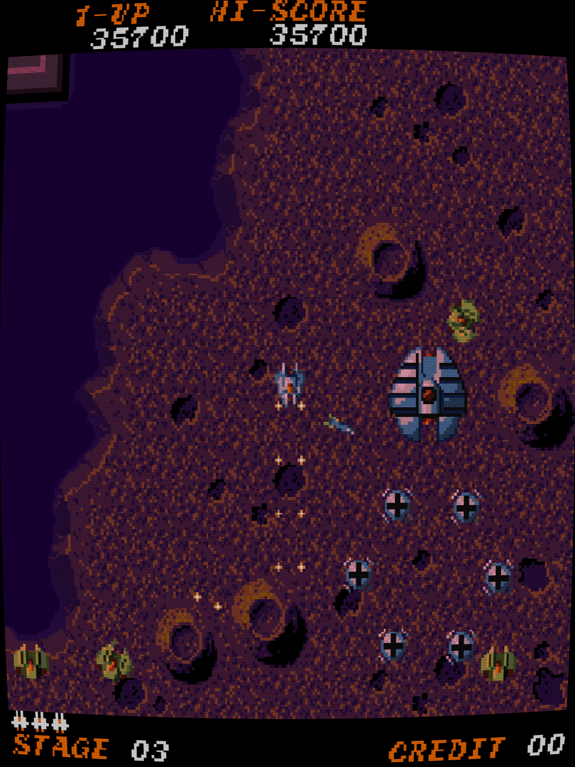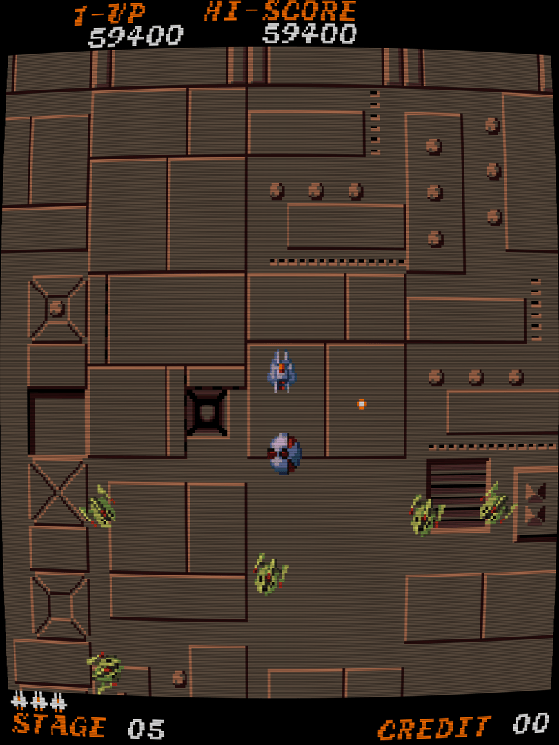 Time Pilot '84: Further Into Unknown World is an eight-way scrolling shoot 'em up, released in 1984 by Konami. It is the sequel to Time Pilot. The player pilots a craft over many time periods. Unlike the original which told the year of each level, the new time periods are designated by new enemies and different colors. There are a large number of enemy types in the game. They each have varying movement patterns, difficulty, and point values. The first button is used to fire a standard shot, which can destroy green-colored enemies. The second button is used to fire missiles, which can destroy the silver-colored enemies. You need to lock on to a silver enemy to fire missiles at it. Destroying enough green enemies brings out a large silver "boss" enemy that must be dispatched before advancing to the next level.
