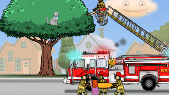 Ride along on a fire truck with firefighters as they drive to put out fires and rescue pets. Help the firefighters hook up the hoses and spray the water. Use the fire copter to drop water! A real treat for those little fire truck enthusiasts and a great way to encourage curiosity and interaction for all. Touch the driver and he honks the horn. Touch a cloud as it passes by and it smiles and hums. The neighborhood is interactive. When your child touches people, animals, or objects they make sounds and perform actions. Its like a moving story book!