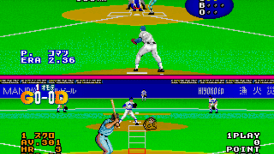 Sega early Japanese baseball game. Screen is divided to top and bottom.