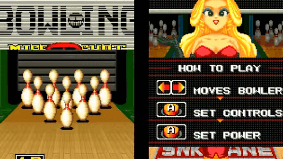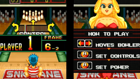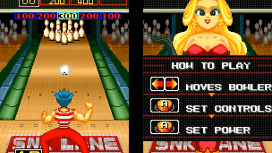 League Bowling is an arcade game released in 1991 by SNK for the Neo Geo console and arcade systems. The game was unique in that it was the first arcade to put emphasis on bowling. The players controls characters with red and blue hair and can select balls from 8 to 15 pounds.