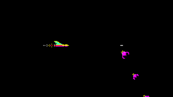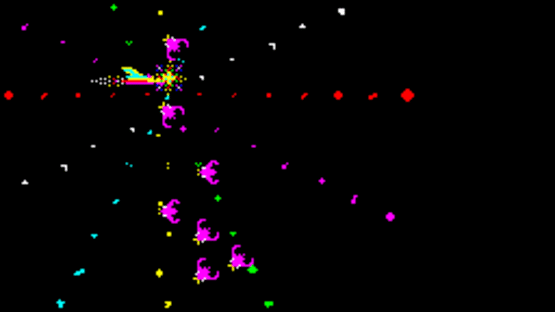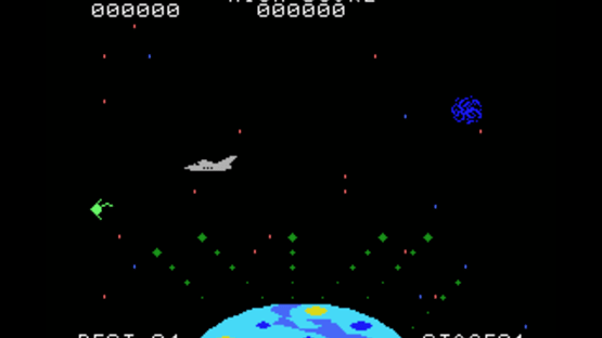A shooter where fleets of ships fly in from either of the screen and loop around in formation. The player may move around the screen in any direction.