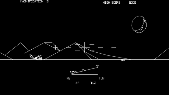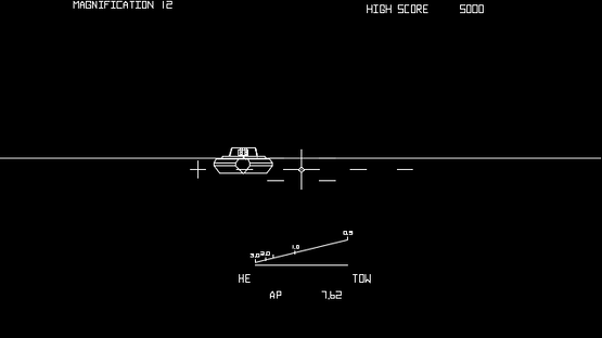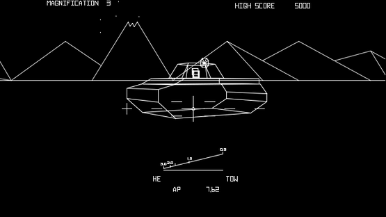 A military simulation version of Battlezone. You do not control the tank, just the turret. Enemy tanks do not fire at you. The only way to lose is to run out of ammo or shoot a friendly tank.