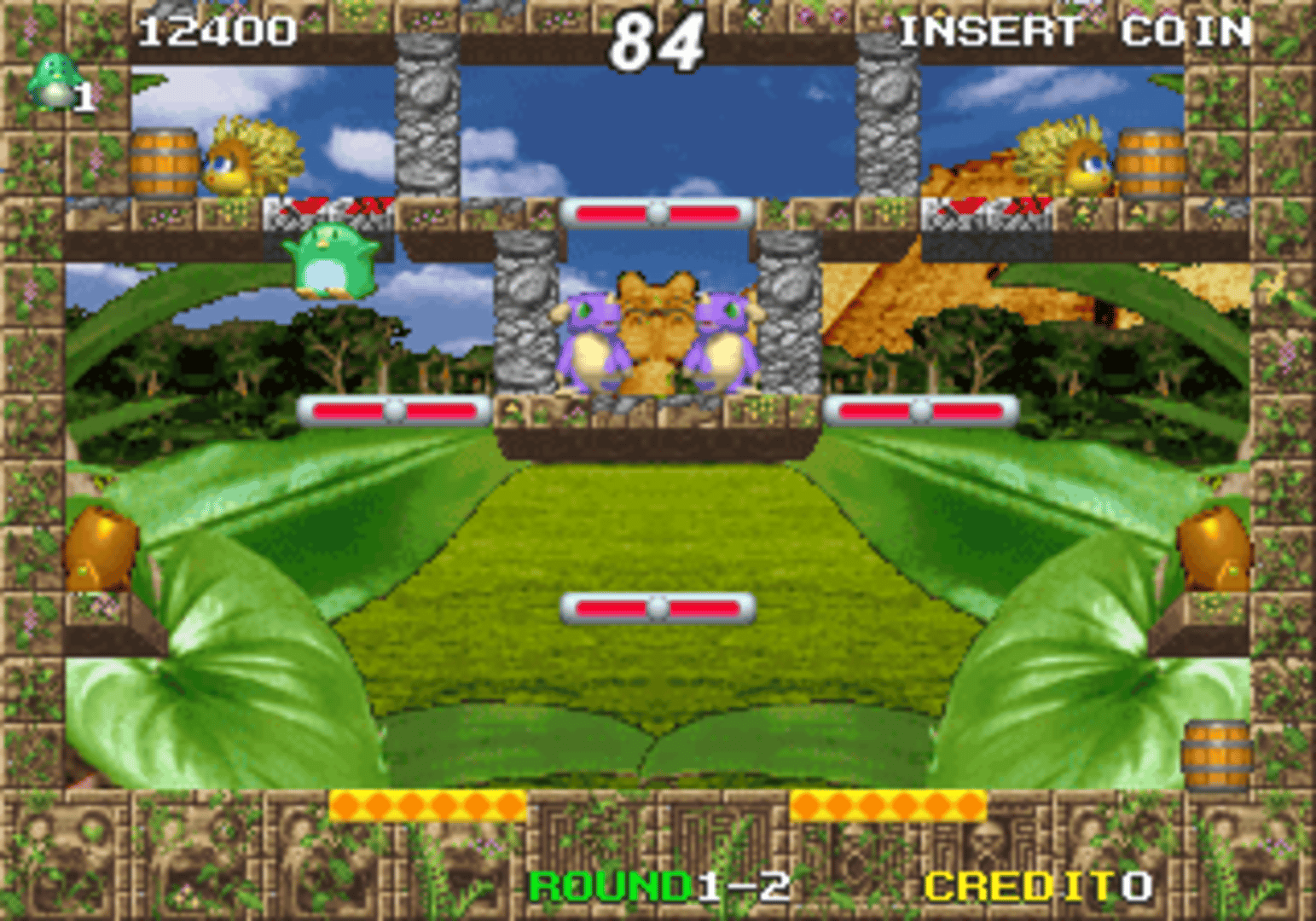A multi-screen platform game where the players controls penguins fighting against various enemies.