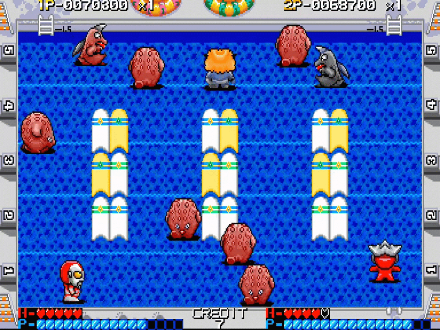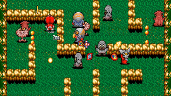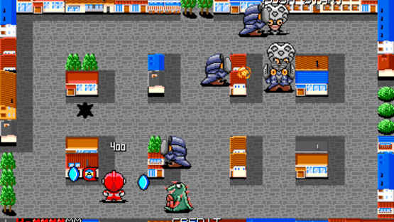 Ultraman Club: Tatakae! Ultraman Kyoudai!! is a 2D top-down single screen arcade game, based on the superhero Ultraman, with chibi, anime-style graphic. The player controls one of 8 versions of Ultraman. Gameplay is very simple - Ultraman must kill all enemies on screen. He has two types of attack - one is very short, but has basically unlimited ammo, & the second has better range, but is very limited. Fallen enemies drop various bonuses (like extra life or bombardment special moves), & Ultraman can pick them up.