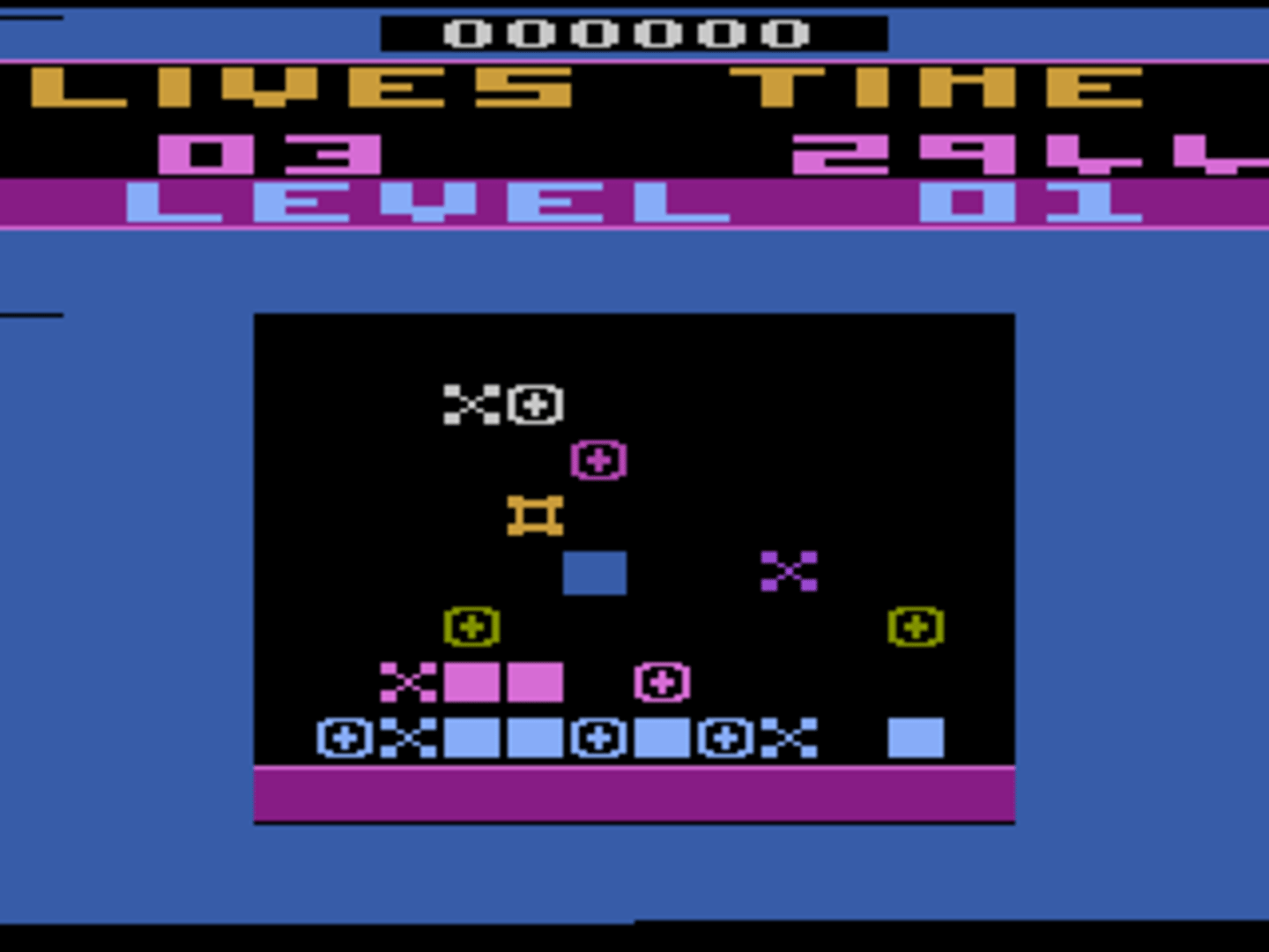 Pick 'n Pile is a Tetris-style puzzle game. On each level there are a variety of symbols arranged in columns on the screen. By moving the symbols around, you need to create columns which contain identical symbols; once all the symbols in a column are the same, that column disappears. Your goal is to earn points and complete the levels by making all of the symbols on the screen disappear. Occasionally, you may become stuck with a symbol that doesn't match anything onscreen; when this happens, you can call for an additional symbol to drop onto the screen. However, as the symbol which appears is random you may need to create quite a few symbols before the one you need appears. Each level has a time limit in which it needs to be completed; run out of time and you lose a life; lose all lives and the game is over. In addition to the regular symbols, there are also some special objects on the screen which may help or hinder your progress. These include bombs which destroy several symbols at once, blocks which may get in the way or be arranged to help out, death heads which diminish time more quickly, and flower pots which can't be moved.