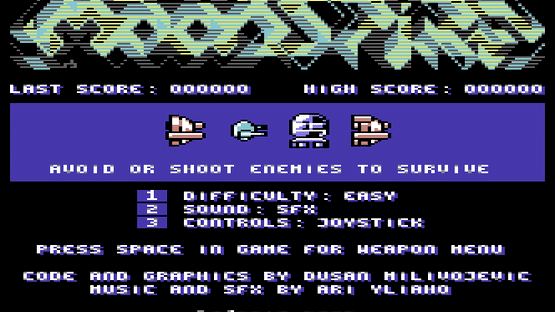 No-one was prepared for the Draxx onslaught on Arcturus 7. Thousands of lives were lost in the initial attack, and hundreds more in the chaotic aftermath. The remaining human colonists rallied and began to strategize a retaliation, but it was too late. The Draxx had called back their forces to the far side of the planet's only moon - taking with them the control orbs from the now rapidly cooling thermal-boosters, halting the terraforming process and reverting the planet back to an inhabitable and desolate ice world. YOU are mankind's only hope. Infiltrate the Draxx Moonspire, cause as much devastation as possible and reclaim the stolen orbs! Moonspire is a sprawling flip-screen exploratory sci-fi shmup developed for the 1983 Commodore 64 home computer by Dušan Milivojević. Initially created as a short one-level demo back in 2014, this final six-level commercial release of the game features over 260 screens to fight through, enhanced firing mechanics and audio by Ari "agemixer" Yliaho.
