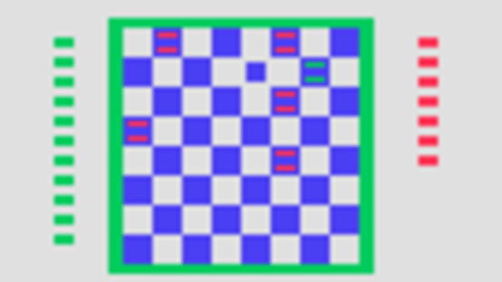 A playable version of the board game of Checkers. The player controls the 12 checkers at the bottom of the screen and attempts to remove the 12 checkers at the top of the screen, controlled by the computer. A player can only move his checkers diagonally toward his opponent's side of the board. A checker can be jumped when two opposing checkers are adjacent to each other and there is an empty space directly across the checker being jumped. If there's a checker in the board that a player can jump, he is forced to do so. If a checker reaches the other side of the board, that checker is kinged and is allowed to move and jump both back and forth in diagonal movements. The game is won by the player who removes all of his opponent's checkers from the board. This preprogrammed cartridge plugs into the console of the Fairchild Video Entertainment System for more TV fun on the Channel F Network. The classic game of checkers is played against the computer. Here is your chance to sharpen your skills without your opponent dumping the checkerboard on your head. Check it out.