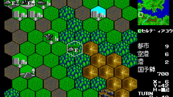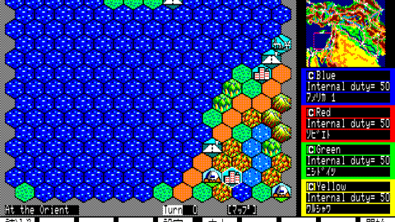 Daisenryaku II: Campaign Version is a turn-based war strategy game that relies on the gameplay template introduced in Daisenryaku II: up to four players engage in battles against each other or computer AI, represented by differently colored armies (blue, red, green, and yellow); the belligerents produce units and vehicles and navigate them on a hex-based grid, trying to occupy the enemy's major cities and harbors. The game includes a main campaign with introduction and background information about the fictional countries involved in the conflict. In addition, at least a dozen playable maps are included, some representing real geographical areas. The MSX and PC Engine (TurboGrafx) CD versions feature enhanced graphics, full-screen battle sequences with backgrounds, and many additional maps.