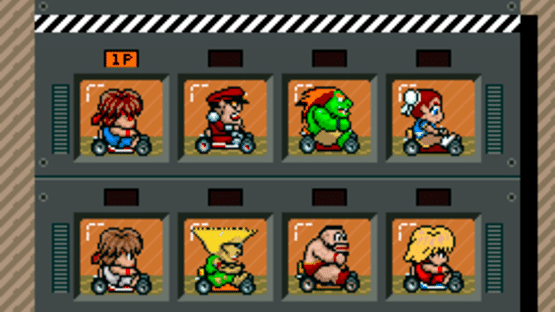 A ROM hack/mod of Super Mario Kart. All the 8 drivers sprites have been replaced with fighters from Street Fighter II, along with new and modified tracks.