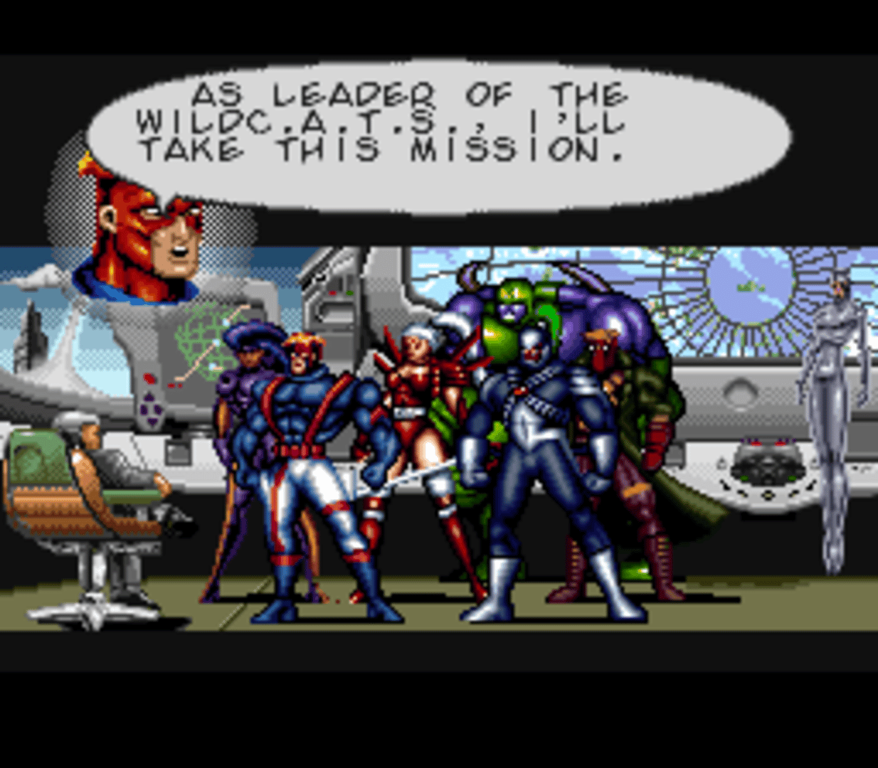 The only thing stopping the immortal Helspont from taking over the earth is a group of high-powered heroes known as the WILDC.A.T.S! Each member of the team wields incredible power - when united, the results are spectacular! Players assume the roles of: Spartan, Cyborg and team leader, Maul, massive cross-breed warrior, and Warblade, metamorphosing hand-to-hand combat expert! If mankind has one hope, it;s the WILDC.A.T.S! -Based on Jim Lee's top selling comic book and smash Saturday morning cartoon sensation! - Unique team-play action requiring a combination of hero's powers to complete the game! -16 Megabit game packs solid punch with intense graphics based on comic book style and hard-edged game play!