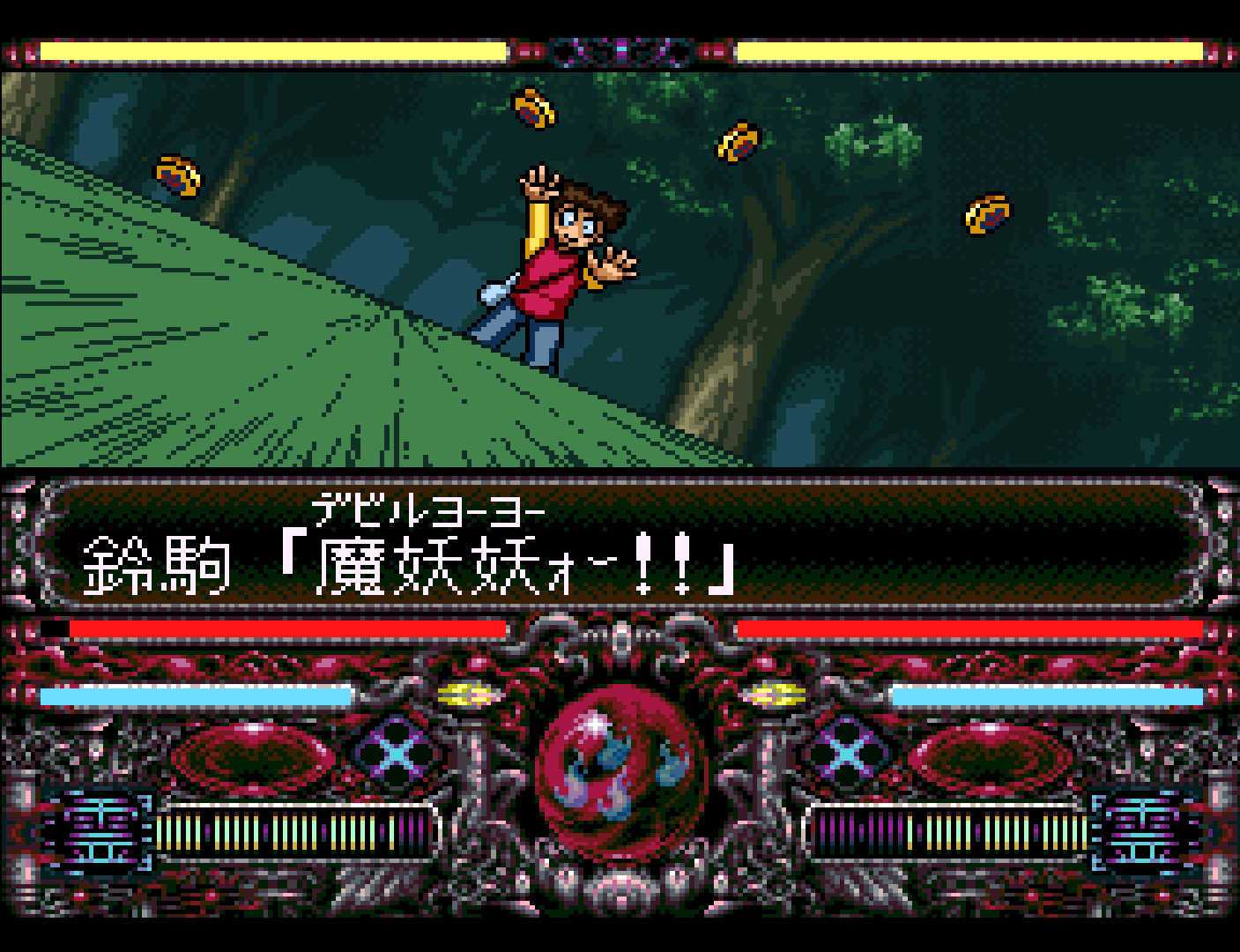 Yu Yu Hakusho: Tokubetsu Hen ("Yu Yu Hakusho: Special Edition") is a fighter game. Rather than controlling the character directly with the D-pad and buttons, the players charge attacks and unleash them at the right amount of power. Combat is depicted as a series of dramatic cutaways as each fighter launches their attacks and the other tries to defend or evade them.