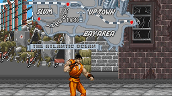 Mayor Mike Haggar vows to snatch the streets of Metro City back from the crooks with his bare knuckles! But the Mad Gear Gang snatches his daughter Jessica. Now there's gonna be some bone-crunching dues to pay! The urban ninja Guy hits the streets hard with Haggar, denting heads downtown and slugging it out in the slums. He's a one man army! His weapons are anything he can find -- swords, knives, or pipes. Now you're Haggar or Guy, each with his own fighting style. Demolish gangland henchmen, samurai swordsmen and musclebound crime bosses in a fist-to-nose frenzy!