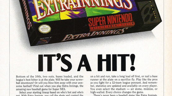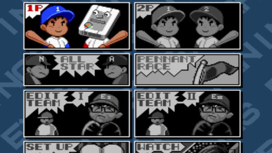 This is a baseball game featuring 12 fictional teams, plus the player can also create 2 custom teams. Game modes include an Exhibition mode, an All Star game, a Pennant Race, and a Watch mode. While Exhibition mode can be either a one or two player affair, the All Star game is strictly for two players to compete in. When playing, batting and pitching are both done from a behind the batter viewpoint. The pennant race involves 6 teams playing each other throughout a season consisting of a number of games chosen by the player. Watch mode lets the player watch two computer controlled teams play each other. Options include either having automatic or manual fielding, having errors and/or wind on or off, and being able to either skip or watch opponents pennant games. There is also the Cold Game option, which lets a baseball game end when a team is winning by the chosen amount of runs.