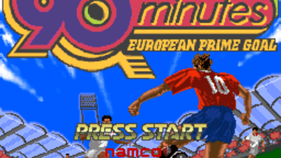 90 Minutes: European Prime Goal is a Super Nintendo Entertainment System soccer video game. The player(s) get to play in either exhibition, tournament, or in the all-star mode. The view is from a left-right perspective and the national flags of several European countries are used in the game. In the game mode "You're a Hero," the player must make miracle plays that either win and/or change the game. The kick-off is doing using 3D graphics with the camera showing the spectators in the grandstand. This game is a regional port of the sequel to J.League Soccer Prime Goal 2 and J.League Soccer Prime Goal, which were both developed by Namco.