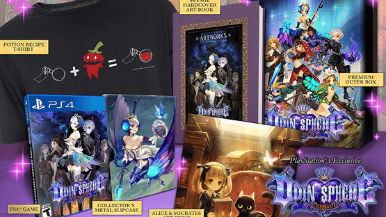 Available exclusively for the PlayStation 4 version of Odin Sphere Leifthrasir is the "Storybook Edition." This beautiful premium edition will contain a bevy of exclusive items designed with the collector in mind. The PS4 game will come nestled in a Collector's Metal Slipcase with the game's key art on the front and a not-yet-revealed image on the reverse. A high-quality Art Print, suitable for framing, brings magic into your home. A Potion Recipe T-shirt, emblazoned with a helpful reminder of the game's alchemy system, lets you take your fandom out into the world. A hardcover version of the 64-page Art Book filled with original drawings from the legendary George Kamitani and Vanillaware rounds out the set. All this is housed within a Premium Outer Box that displays breathtaking art work on every side.