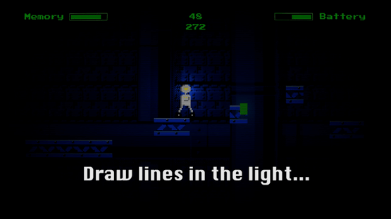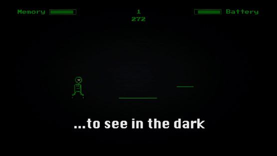In the distant future, an apocalyptic event has rendered the world in darkness, where robots seem to be all that survived. Ration your battery and memory to get as far as you can, but you can't move and see at the same time, so memory use is vital. Mark carefully, as every jump can be fatal.