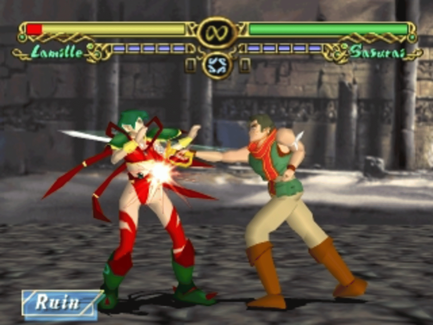 Egao no Asu ni is the third and final title in the Blue Breaker series, and is a direct sequel to Hohoemi o Anata to. The game is once again a full-3D fighting game, and the story picks up directly after the previous title, with Chimena still searching for the holy sword. There are also once again several new side stories featuring other characters. There are several new playable characters in this release, as well as a brand new Team Battle mode, which allows each player to select three characters to use in order. There is also an optional prologue that recaps the story of the previous title.