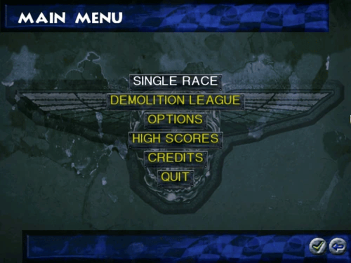 Demolition Racer is a racing game with a twist. Rather than a game that just requires you to try and win the race, this game gives you points to destroy the other racers' cars. The game has many styles of game play so you don't have to play the same style each game. There are 5 game styles in the Single Race section of the game. This section does not count towards unlocking cars or tracks. It is for practice and just plain fun. The main style is Demolition. In Demolition, you race against other cars around the track and get points for hitting them, spinning them in circles and knocking them into the wall. You also get a big bonus for landing on top of a car which will immediately destroy the car. When you finish the race, your final position is found by multiplying the points you got from hitting the other cars with the points that you got for the position you finished in. So if you finish first, but never hit anyone, you won't win the race.