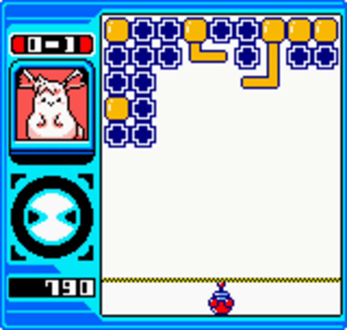 Puzzle Link is a game where blocks of matching color have to be dissolved. New blocks constantly scroll into the screen from the top. The game is over when the first blocks reach the bottom of the screen. You can dissolve blocks by shooting at them. The shots form a line where they impact. If that line connects otherwise unconnected blocks of the same color they will dissolve. There are three different modes: In "Normal" you have to link two special blocks that appear after some time. If you manage to finish the level within the time limit you will unlock one of 50 collectible cards. In "Clear Mode" you have to clear a given constellation of blocks. "Battle Mode" is a two player link-cable mode.