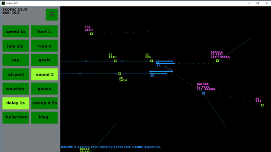 Endless ATC is a realistic air traffic control simulator with a simple, easy to use interface. The goal is to guide as many planes as possible safely to the runways. Find out how many flights you can manage to control!