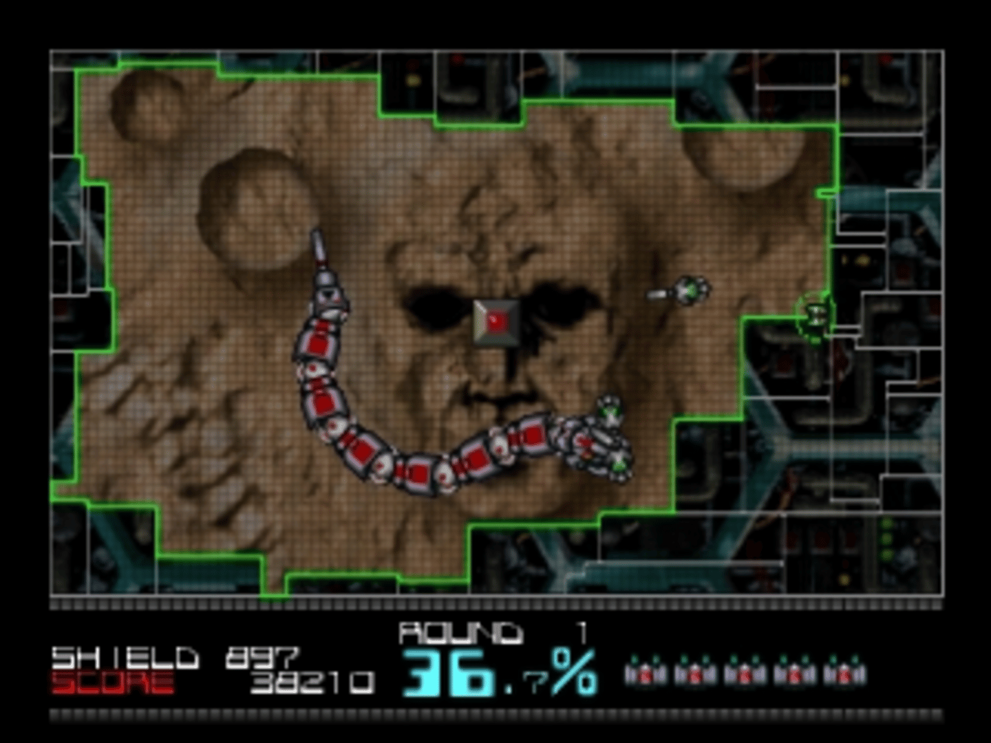 QIX Neo is a remake of Volfied, Taito's arcade game from 1989. The graphics and sounds were upgraded, but the basic gameplay remains the same, with the player controlling a tiny ship moving over a green contour line. The thin line is drawn over the edges of the screen, framing the game field. The ship acts as a cursor and has to be used to draw a square or rectangular extension into the field, thus removing it and slowly decreasing the size of the available space. Enemies roam each level, moving in random patterns around the screen but always following the movements of the cursor. The ship has a force-field shield around it, and only becomes vulnerable when drawing new lines.