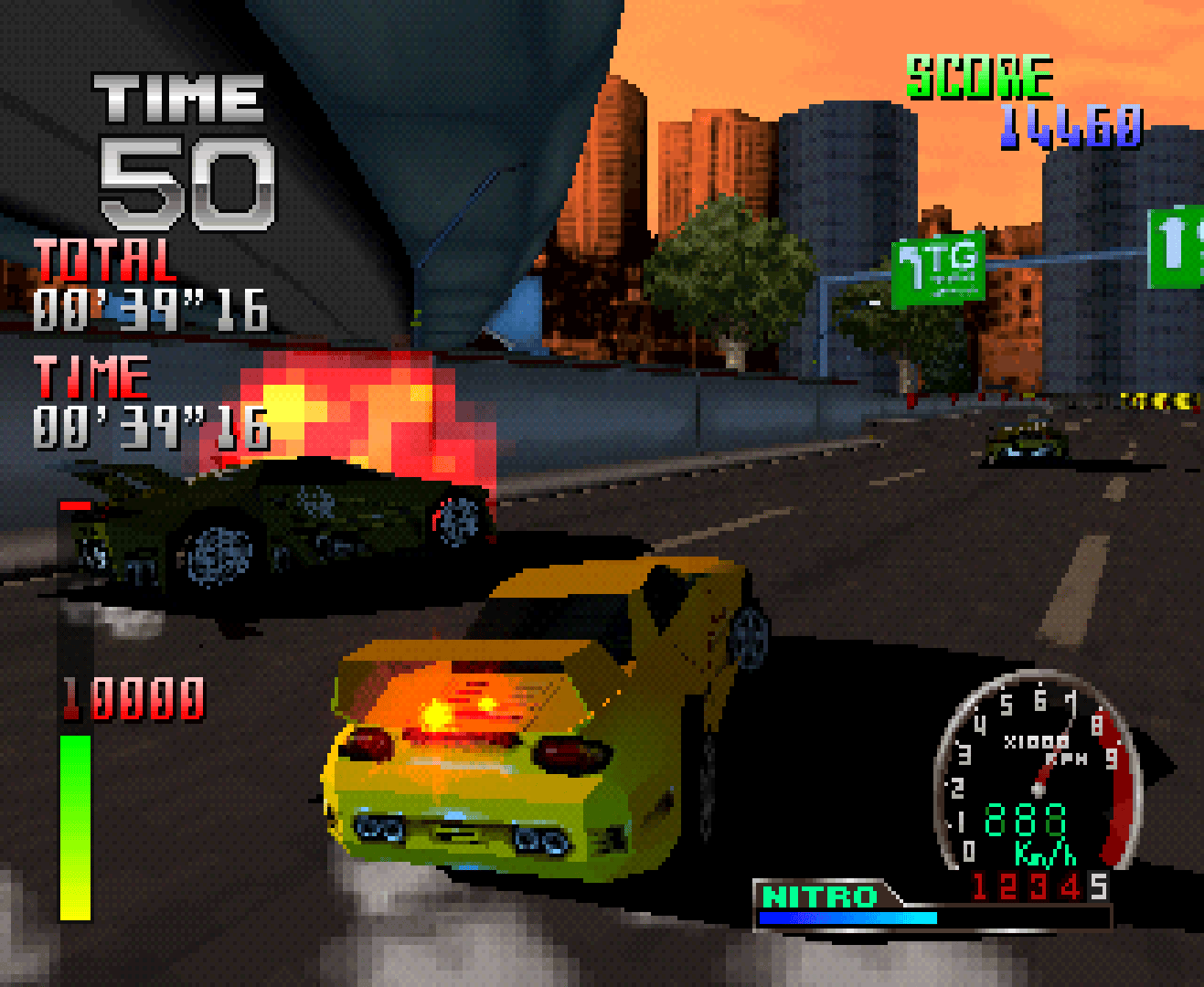 The Tracer Team is looking for a few good drivers. Don't get the wrong idea, though. In Ray Tracers a "good driver" always exceeds 150 mph, crashes into everything possible and uses up nitro boosters like they're going out of style. so, have you got what it takes? A futuristic city is terrorised by Black Kaiser, an armed racer gang. Cindy Gibson believes the gang were responsible for her father's death and she wants revenge. Inheriting her father's awesome racing cars, Cindy creates Ray Tracers and recruits the best racers she can find. Now the real battle begins in a search for the truth! Created in the best anime traditions, Ray Tracers is instantly addictive and immensly playable. Varied scenery, tunnels, dips, sudden drops and obstuctions just begging for you to decimate! The monster-fast, explosive arcade smash from Taito - Ray Tracers.