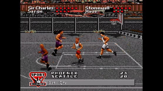 In the game you play street basketball two-on-two with your friends or with the computer. So there are no referees, no fouls, and no shot clock, but the teams called by the names of cities such as Phoenix or Chicago. You can choose your player from 16 available players, including Barkley himself.