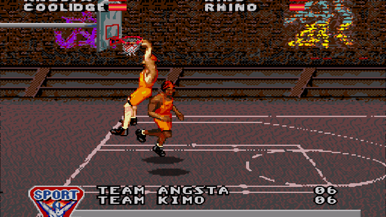 This game is a sequel to Barkley: Shut Up and Jam!. It is a street basketball game which means no referees to enforce fouls and no shot clock to force a player to take a shot. The game features an exhibition and a tournament mode. In exhibition mode the player chooses 2 players out of a possible 10 to play in a 2 on 2 game. The game can either be played for 3 minutes, 5 minutes, or til the first team gets to either 21 or 50 points depending on what option is chosen.