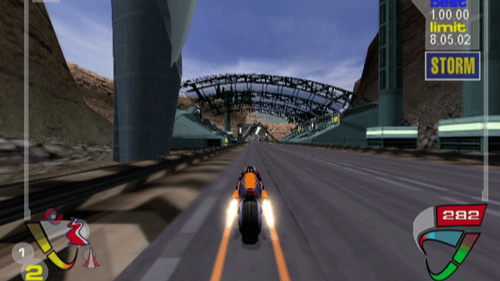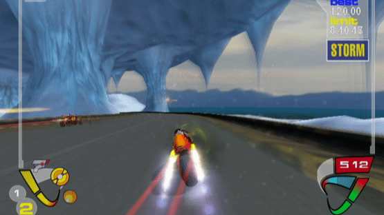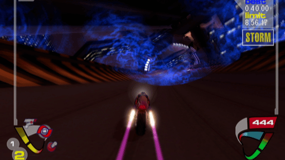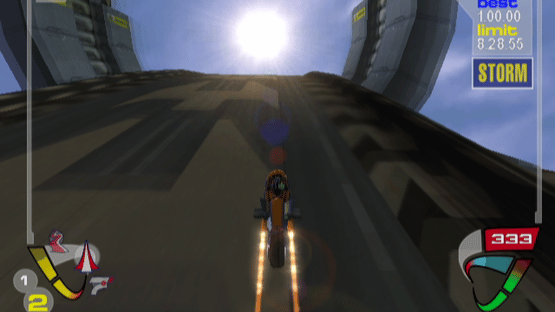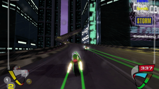 Futuristic, sci-fi themed racing game featuring ridiculously fast motorcycles (of sorts) that can travel in excess of 1000 mph. They can also be outfitted with weapons, making each race fast and nerve-wracking.