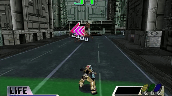 Charge 'N Blast is a shooting game where you play as one of three marines who have to rid the earth of alien scum. The gameplay is similar to Cabal, you move left and right dodging enemies while charging up you weapons to blast them away. There are three different marines you can choose from, each with their own set of weapons. As usual there is the balanced character (Johnny Rock), a weaker but faster one (Pamela Hewitt) and a slower but stronger one (Nicholas Woods). You can choose to play in one player mode, time attack or two player mode. The missions are broken up into small areas where you have to kill all enemies before moving on to the next area. Each mission ends with a boss character such as a giant insect or a Godzilla-like monster. Use the X, Y or B buttons to choose a weapon, press A to charge and shoot and aim with analog stick. There are different types of weapons that can be used on the different types of enemies. For example the single missiles for far away targets and torpedoes for underwater enemies. You can fire your weapon continuously, but this doesn't do as much damage compared to a fully charged shot. Charging each shot means you have to aim a little more carefully, but you'll especially need this in the later levels. You can dodge enemies with the L and R buttons.