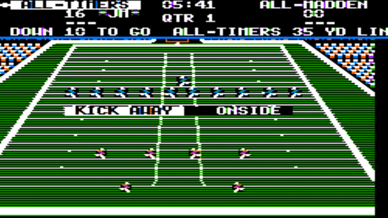 Old american football simulation co-designed by famous sportscaster John Madden. The first game in EA's long-running Madden series. Different versions of this game have been available on almost every platform - with the Mega Drive version being the most famous of them all. The game concentrates more on tactics than pure action.