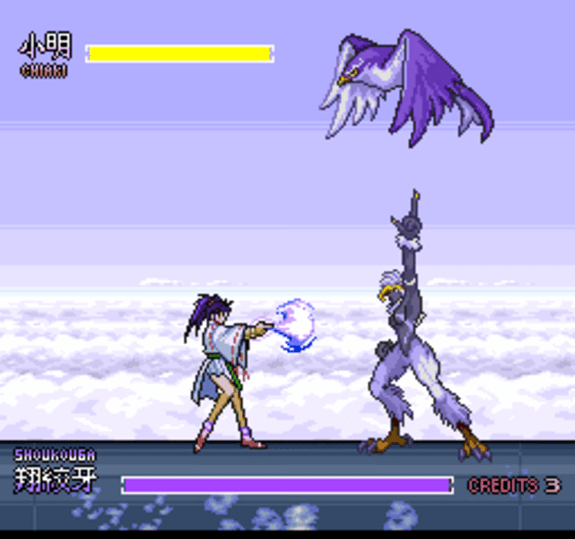 Kishin Dōji Zenki FX: Vajra Fight is based on the manga Kishin Dōji Zenki by Kikuhide Tani. Once upon a time the Japanese priest Enno has fought and defeated the demon lord Zenki. Zenki was sealed for centuries in the magical bracelet that the Enno family carried through generations. But now, in modern-day Japan, demons called Seeds of Karuma, who worship an ancient evil goddess, began to appear on the Earth, bringing death and destruction. Enno's descendant, a lovely young girl named Chiaki, has no choice but to use her bracelet to summon Zenki! But while being sealed, Zenki has reverted to the form of a nasty, greedy little boy. Chiaki must evoke the power of bracelet to make Zenki fight on her side, and destroy the demons!