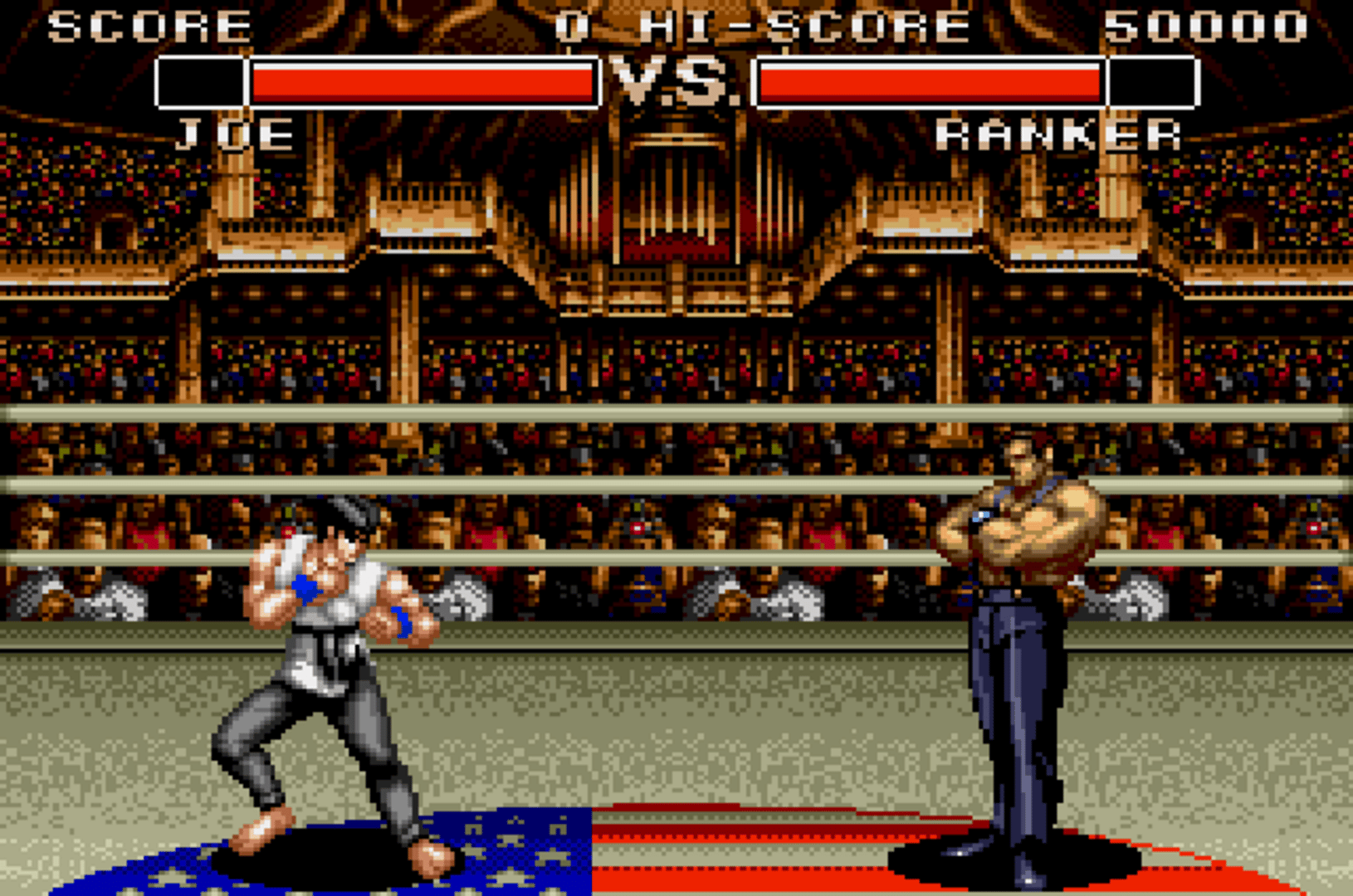 Unlike most other fighting games, you can control only one character (Joe) in single-player mode. In two-player mode, you can choose to fight as any of the seven available fighters, and also choose a scenery. The game plays like a standard 2D fighter: you can punch, kick, and jump on you opponents, but the fights are not entirely 2D, since you can also take a few steps vertically.