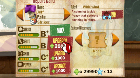 Academy Of Champions: Soccer features a story mode set at a magical soccer academy, in which the player must build a group of five players to challenge other teams. Academy of Champions features arcade-style soccer, focusing on tricks, shooting, and the whimsical nature of the academy. Academy of Champions has a main story mode and a supplemental quick-play mode to allow the user to play a single match by themselves or with a friend. The story mode takes place at Brightfield Academy, a magical soccer academy featuring Pelé and Mia Hamm in cartoon form as the masters of the academy.