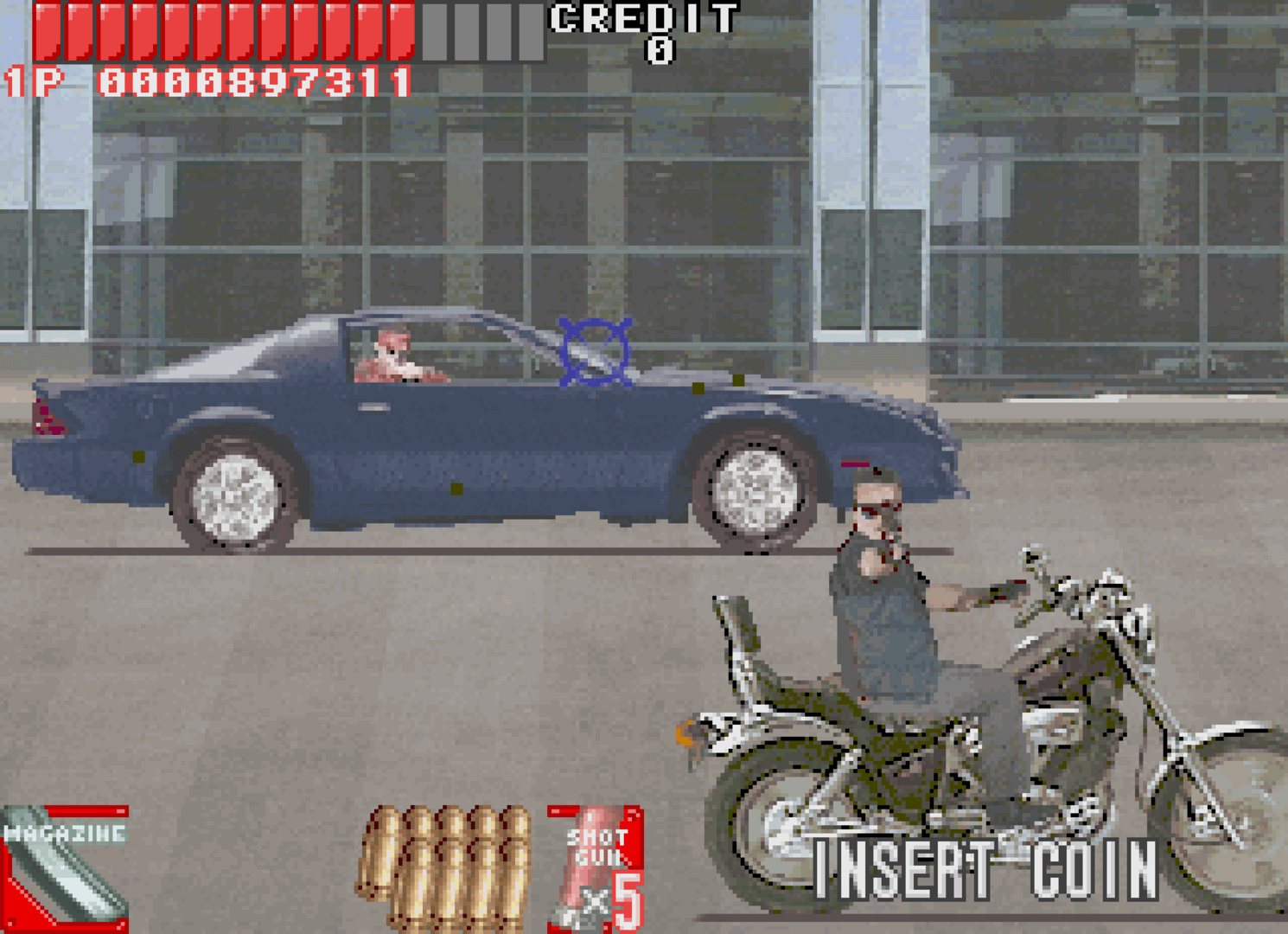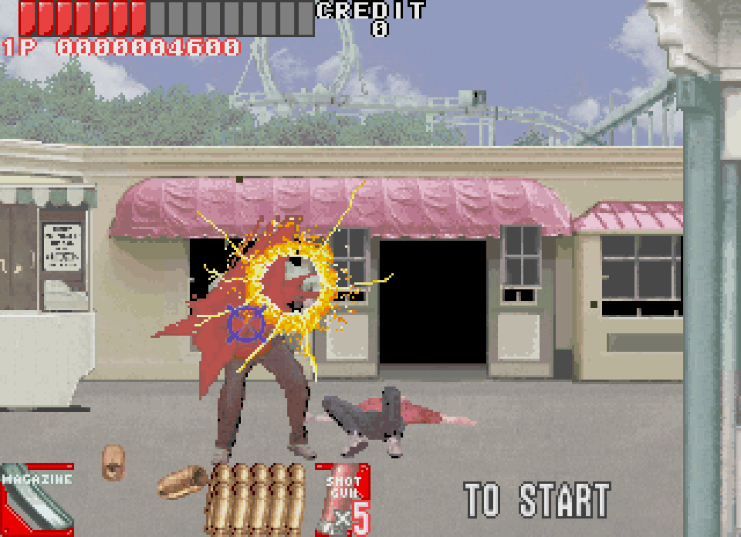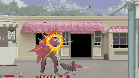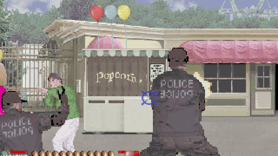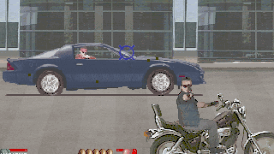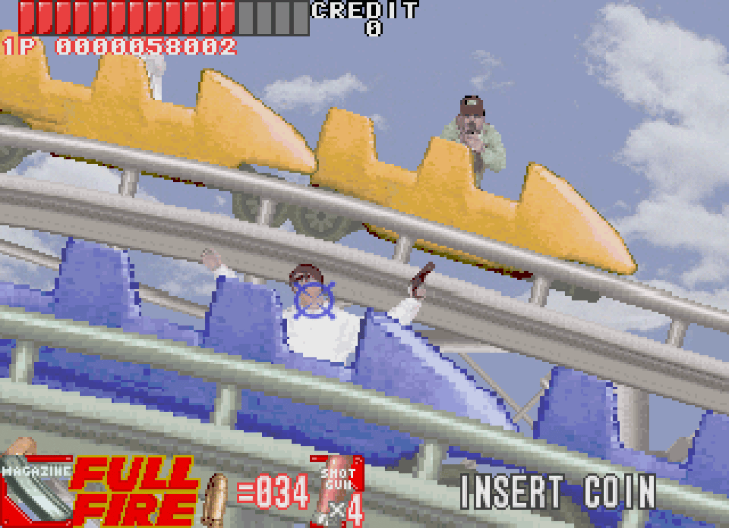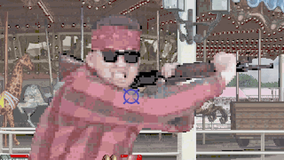 A once peaceful city has been turned into a complete nightmare by an extremely violent gang who call themselves "Hoppers". The officers of the Special Police are called in to mow down the Hoppers and save the city from certain doom! There are six rounds of pure mayhem as you mow down enemies in quick succession, as well as having to avoid innocent bystanders. Unlike many gun arcade games during this time period, Under Fire uses an infrared sensor to track gun movements instead of the timing of a CRT monitor, eliminating the need of screen flashes.