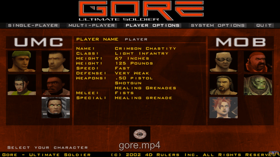 New technology has led to the development of an advanced combat training emulator, where the weak have died and the best become even better. Known as the Meat Machine, this device takes Marines where they have never been, shows them enemies they have never faced, and trains them with both existing and advanced weaponry. As one of a variety of characters, you'll explore expansive levels with many ladders and basements, pick up or destroy items, and conserve your ammo and stamina for intense firefights.