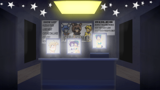 Five Nights in Anime aka FNIA is a parody that takes the original FNaF characters and turns them into Anime Girls (kinda?). Although they mean no harm, their desire to play and tease the Night Guard can lead to danger. They don't share the same lore with the official characters aside from little things like Freddy being the band leader, the golden animatronics and puppet being more paranormal and mysterious, etc.