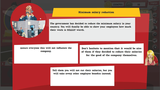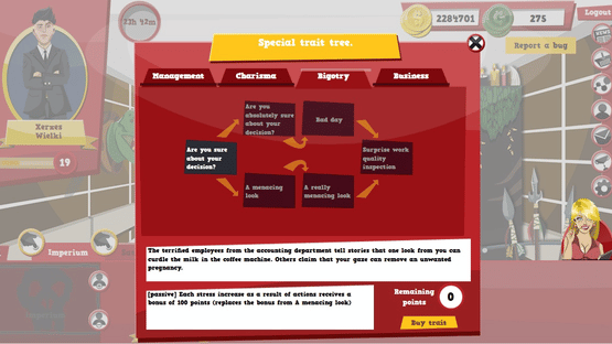 Working at a large corporation can be a real nightmare. Well, unless you’re the boss. Now this opportunity stands before you! Take on the role of a supervisor in a big company and fulfill the most fundamental task of someone in your position – finish off your employees. Literally. Very literally. At the same time, don’t forget about the profitability of your business. After all, you need some funds for your yachts, expensive clothes and elegant, modern, eccentric furniture that fits your office with a stunning city view. Office Suicide Saga is a browser game, so you don’t have to install anything or order/buy at the store. You can play it wherever you have an Internet connection! Office Suicide Saga is also a free game,