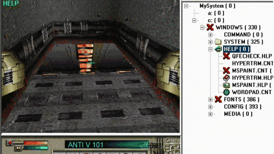 Virus: The Game is a game in which the player battles within the computer's directory structure and files. Traverse the directory tree in a 3D environment hunting down 'viruses', with the computer's own sound files being played in the background, while graphic files found on the hard drive are used to texture the walls.