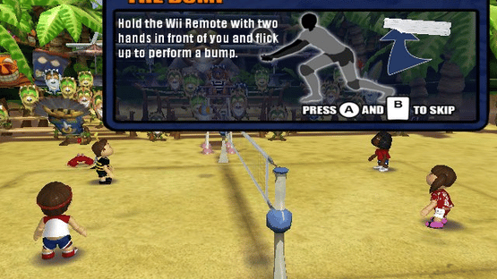 All of the games allow up to 4 players playing at the same time, or in the case of Bocce and Disc Golf, taking alternate turns. All the games use the Wii Remote only, no games require the use of the Nunchuck or any other peripheral. After creating a character, the player can compete in tournaments against increasingly tougher opponents in any of the sports. Playing Quick Play games and Tournament games earns the character Skill Points. These are then used to calculate the difficulty of the CPU opponent for future Quick Play matches. Hence, after completing all tournaments for all the sports in Big Beach Sports, where each game has a preset difficulty, the player can then return to Quick Play and continue to max out Skill Points (999 points) for each of the six sports. In the case of most of the sports, however, the game becomes extremely challenging and the AI opponents are much tougher to beat after reaching 900 skill points.