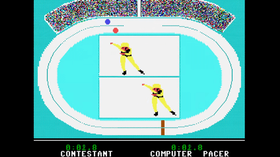 The Games - Winter Edition is the follower of Winter Games. Epyx has chosen a new selection of events. Some events were already available in Winter Games, while others are new in The Games. Together with the Winter Games is The Games a nice collection of Olympic disciplines. As it was common with sports games of that time, there are some disciplines that call on the player to destroy the joystick by jolting it too much. The game is designed for up to 8 players. The players receive points for successfully ending a discipline. For each gold medal you get 5 points, for each silver medal 3 points and one point for each bronze medal. The player with the most points wins the game. Epyx has secured a license from the Olympic Commitee of the United States for The Games - Winter Edition and The Games - Summer Edition. The disciplines are partially divided into several sections in which the player has to do another action with the joystick.