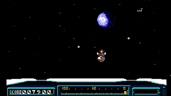 In the year 2050 the Earth has been attacked by the villainous Raggosians and it is your job to save the planet! You will need to pilot your ship, The Tempest, to the planets Uranus, Saturn, Jupiter, and Earth in order to retrieve certain minerals which can be used to fight the Raggosians. The Raggosians will be trying to stop you from reaching these destinations, though, so you need to use the Nintendo zapper to fight back. Numerous (and very fast!) enemy ships will fly by on the screen and attempt to destroy your ship. You need to shoot the ships and incoming missiles before your ship takes too much damage. From time to time a comet will fly by, and if you shoot this a temporary barrier will be formed that protects your ship from enemy fire. Occasionally you can also earn a smart bomb which appears in the bottom of the screen and destroys all enemies if shot. Each level ends with a large boss which will take multiple hits to destroy.