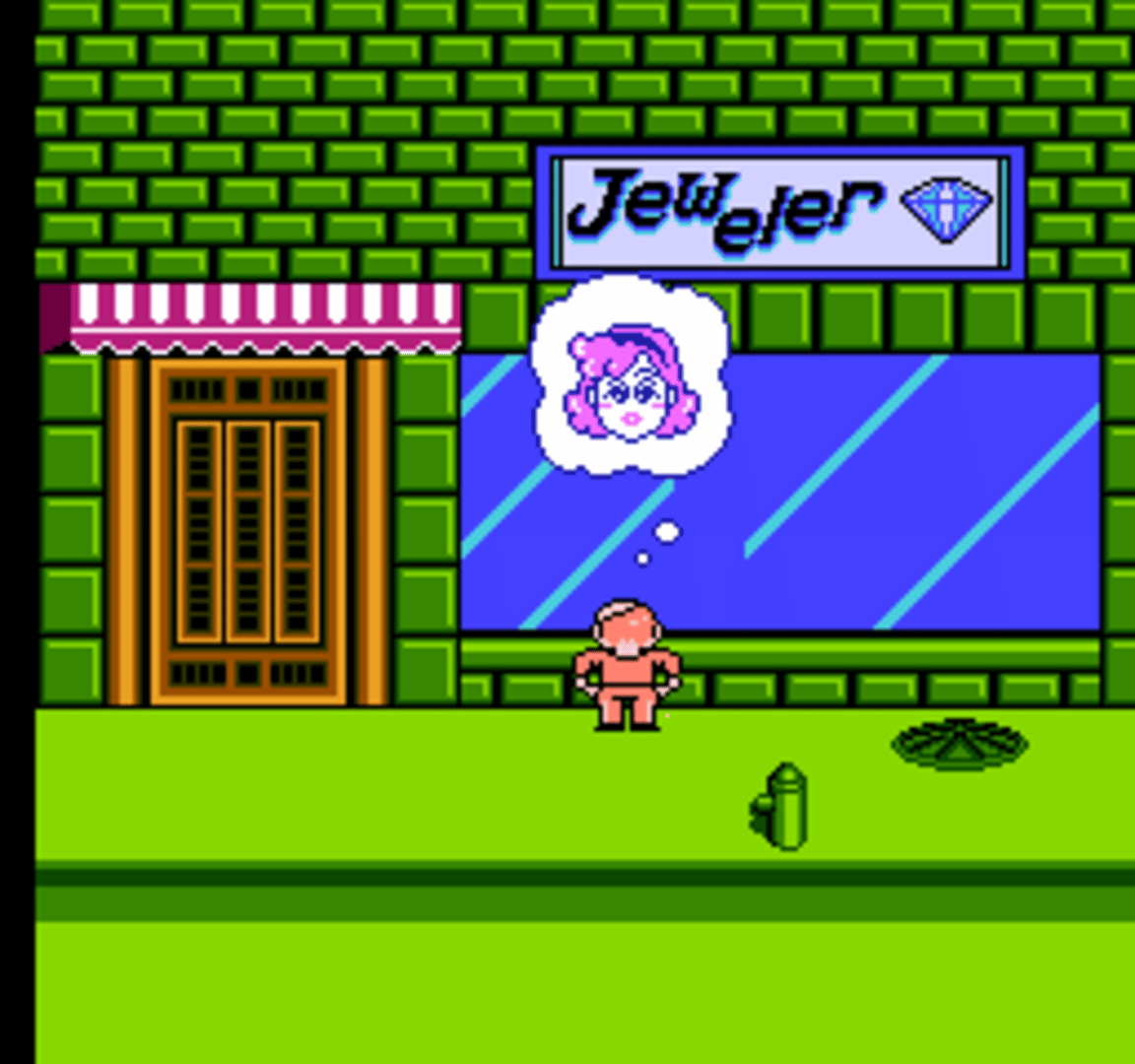 The Pizza Boy must deliver pizzas to various dangerous locations in order to make enough money to buy his girlfriend an engagement ring. He is thwarted by many enemies, including his romantic rival who appears frequently to take him down. Points are scored at the end of each stage based on completing stages quickly, defeating enemies and recovering extra pizzas.