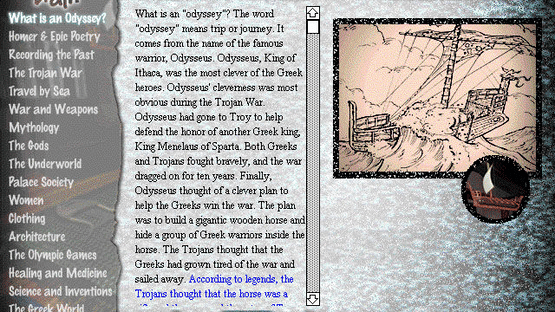 Wishbone has been zapped inside the combobulator and the only way out is to re-enact Homer's Odyssey. The game begins in Troy, where the player picks up the crew roster and some wine. The game then passes through the cave of Polyphemus, Aeaea and Circe, Scylla or Charybdis, Thrinacia and finally home to Ithaca, where the player must win an archery contest to win Penelope.