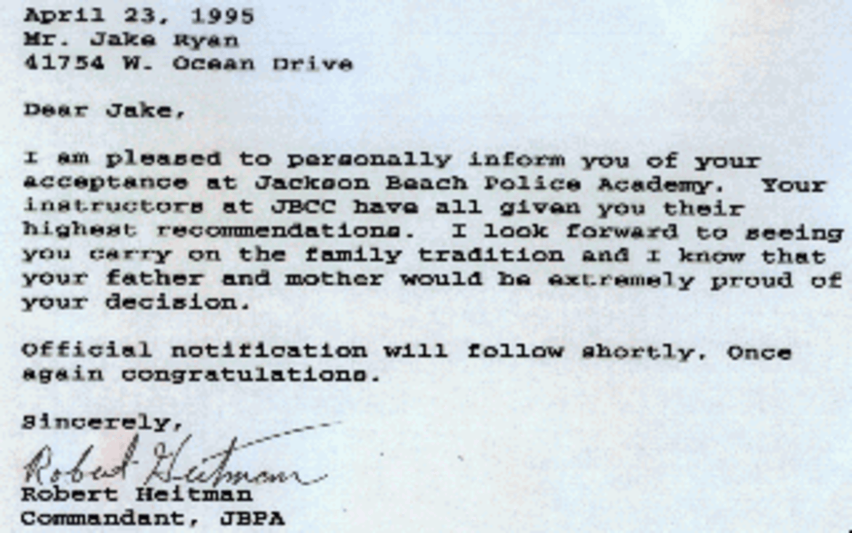 May 15 1984. In a bar, shortly after a shady deal took place two men enter the bar. They are undercover cops, and once the criminal notices them, he flees the bar, and as his motorcycle skims past town, the pick-up truck used by the undercover cops isn't capable of keeping up when the criminal goes past a fence into an open field. However, while escaping, he left something very important behind. Three days later, someone breaks one of the agents' house. Inside, John and Jackie Ryan are brutally assassinated by an unknown hitman. Their son Jake witnesses everything hidden from the closet in his parent's room. 11 years pass by, and Jake Ryan, living with his grandmother since the incident, joins the Academy and graduates with flying colours. His parents' death turned into a cold case, despite the best attempts by Lyle Jamison, one of John's closest friends and P.I. to bring the criminals into justice. As he is assigned to the local Jackson Beach PD, he learns that stolen National Guard weapons are suspected to be circulating in the area, and one night something catches Jake's eye that might bring him closer to the truth...