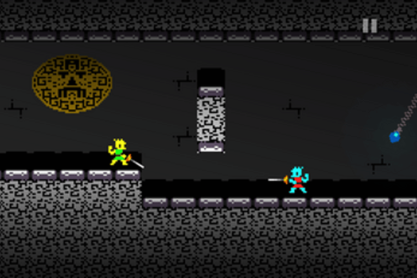 EGGNOGG+, a competitive arcade game of immortals sword-fighting to the death. Stab each other, hurl and ricochet your swords off of the walls and ceilings, engage in pugilism, jump over spike pits to make it past your eternal foe and reach the far end of the strange complex. Hurl yourself triumphantly, and finally, into the EGGNOGG. Includes procedurally generated bytebeat tunes that you can edit live, and also create additional songs.